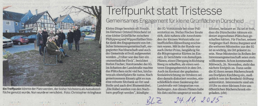 Herrn Dr. Rembold, sowie der IG Dürscheid, ist es uns gelungen, ein weiteres Angebot für die Bewohnerinnen und Bewohner von Dürscheid zu schaffen.