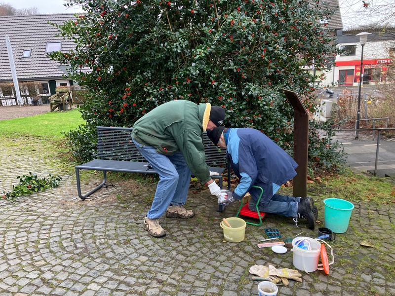 Dez. 2025: Aufstellen der "Plauderbank" auf dem Kirchplatz